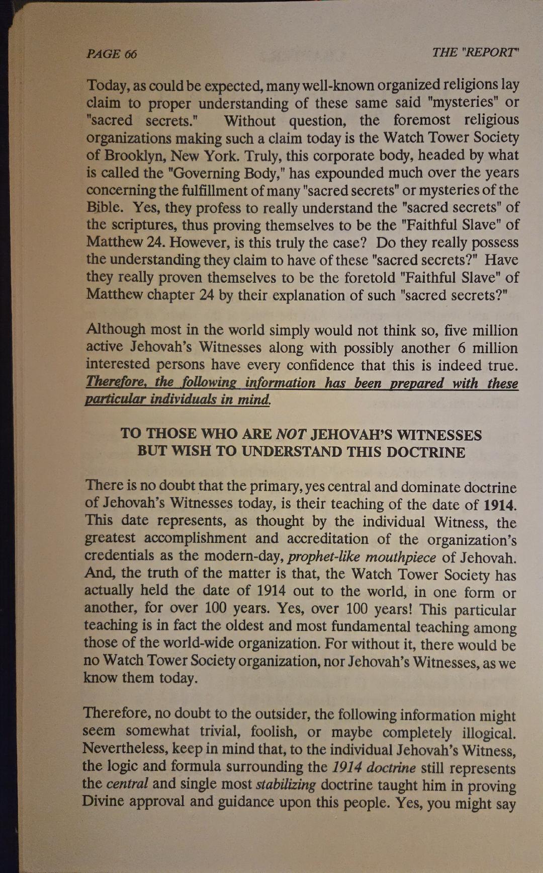 See scan below of 1994 "The Report" Book pages 65 & 66 showing listing and prediction of Watchtower Society to become a [Greek: "Mysterion"] ... or "Mystery" fulfillment of "Babylon The Great" [Rev 18:2-4] in book over 30 years ago ... here: viewtopic.php?p=6327#p6327